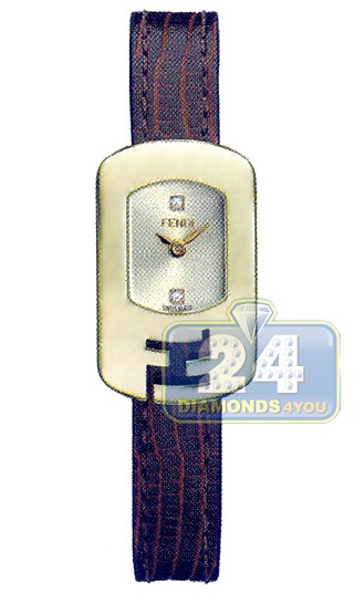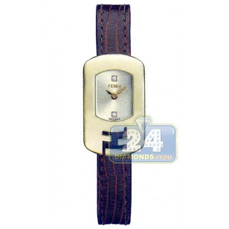 Fendi Chameleon Small Diamond Champagne Dial Yellow Gold Case Brown Leather Strap 18 mm Women's Watch - Reference F300425021D1