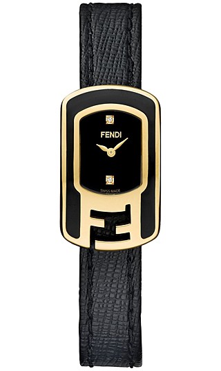 Fendi Chameleon Small Black Enamel Yellow Gold Case Diamond Dial 18 mm Women's Watch - Reference F311421011D1