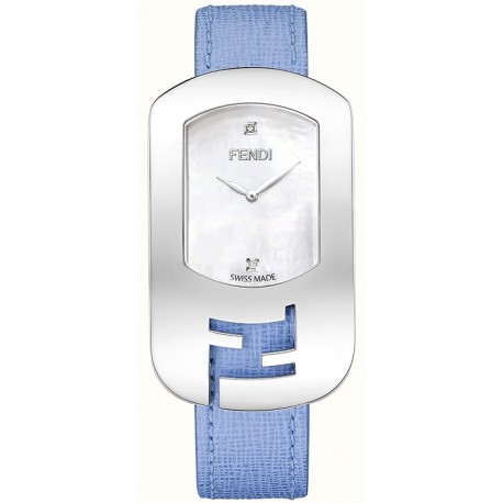 Fendi Chameleon Steel Case Blue Leather Strap Diamond White Mother-of-Pearl Dial 29 mm Women's Watch - Reference F300034532D1
