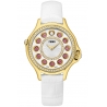 This Fendi Crazy Carats Special Edition women's watch F111024041B2P02 features 33 mm case artfully crafted in 18k yellow gold. Its bezel is amazed with 60 white diamonds (0.45 carat). You can easily change gemstone hour markers by turning the crown. They're presented by 12 diamonds (0.58 carat), 22 pink and blue sapphires (1.18 carat). The timepiece has white dial accented with 36 diamonds (0.12 carat). It comes on genuine white alligator leather band secured by pin buckle. It's also set with 36 diamonds (0.08 carat). This is a limited edition designer watch for the sophisticated woman!