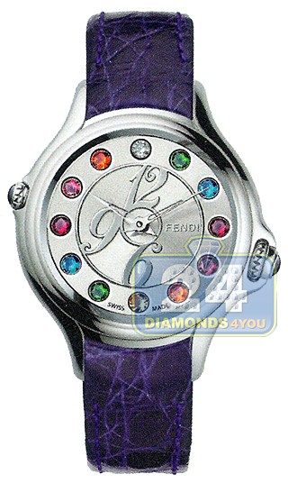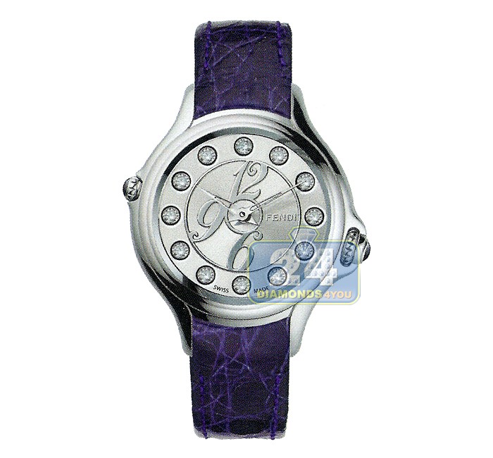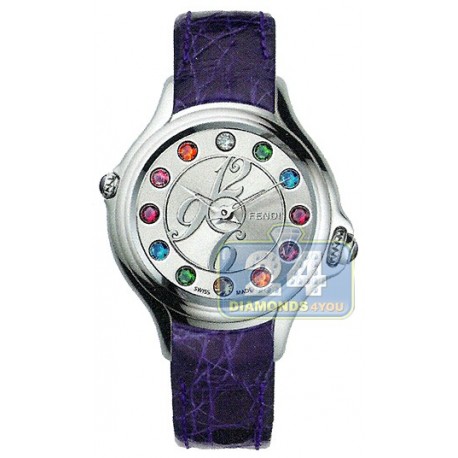 Fendi Crazy Carats Purple Leather Silver Dial Steel Case 33 mm Watch - Reference F104026033T05
