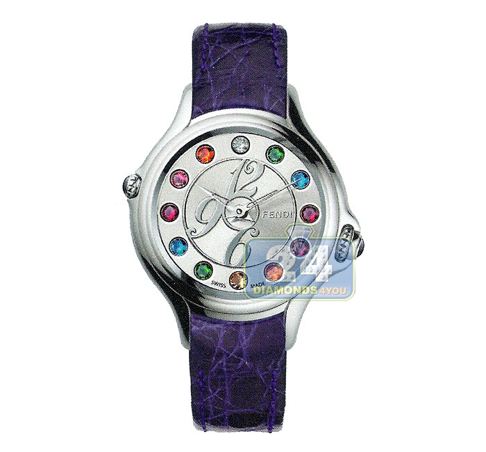 Fendi Crazy Carats Purple Leather Silver Dial Steel Case 38 mm Watch - Reference F104036033T05