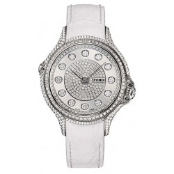 Fendi Crazy Carats Special Black White Fur Strap Diamond White Dial Women's Watch - Reference F106034014P4P02