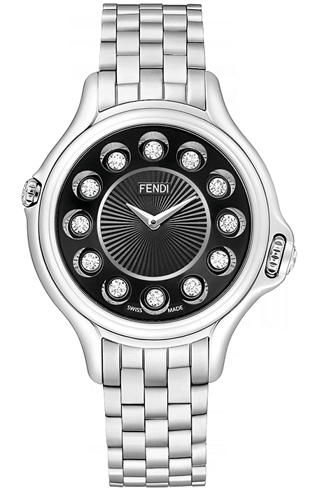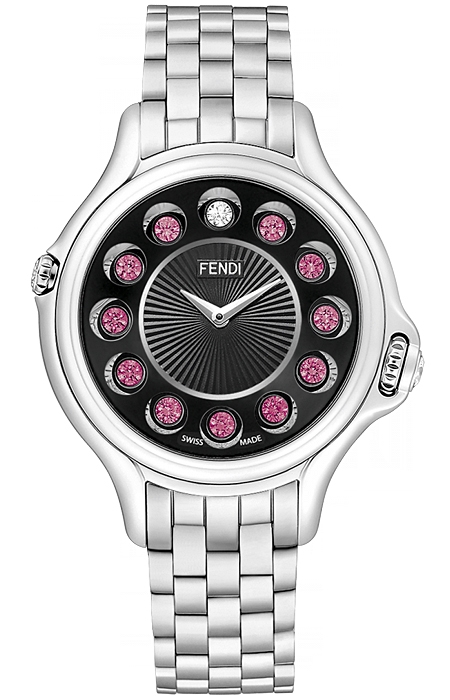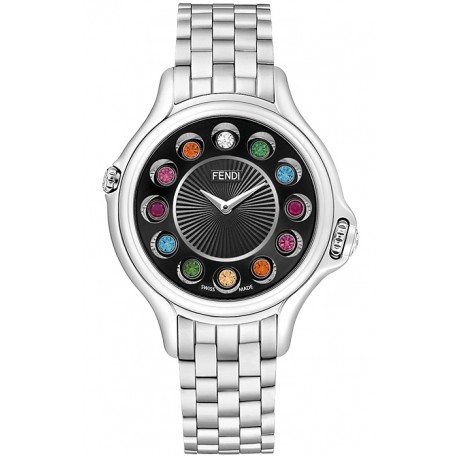 Fendi Crazy Carats Black Dial Steel Bracelet 33 mm Women's Watch - Reference F107021000T02