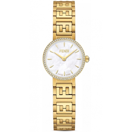 Fendi Forever Diamond Bezel White Dial Gold Bracelet 19mm Watch