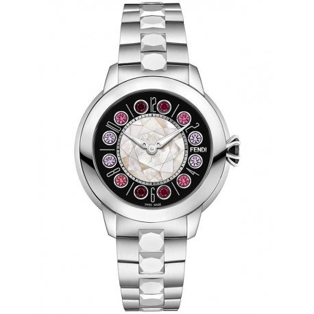 Fendi IShine Rotating Gemstones Black Dial Silver Steel Bracelet 38 mm Watch F121031500T01