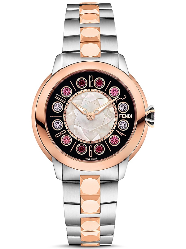 Fendi IShine Rotating Gemstones Two Tone Rose/Silver 33 mm Watch F121221500T01 also known as FOW424A12IF10R3