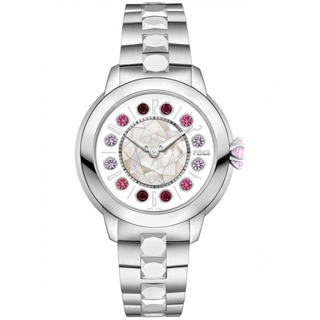 Fendi IShine Rotating Gemstones White Dial Silver Steel Bracelet 33 mm Watch F121024500T01 also known as FOW418A12DF10R3