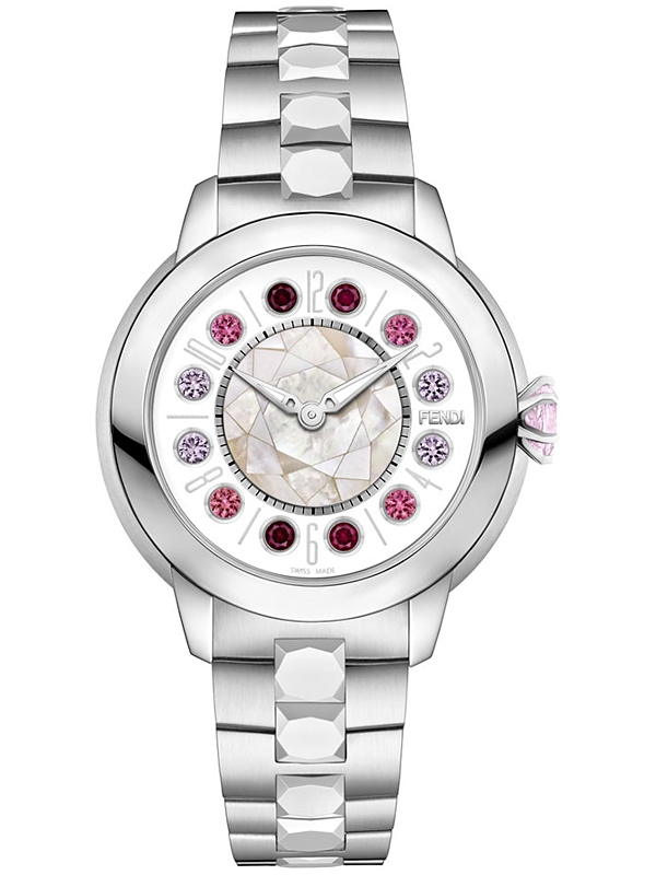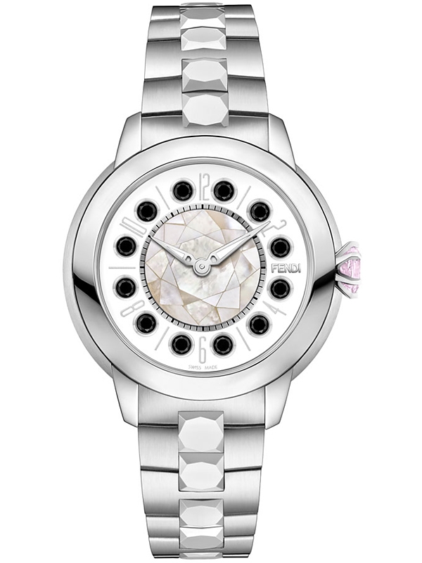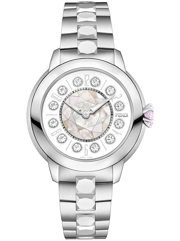 Fendi IShine Rotating Gemstones White Dial Silver Steel Bracelet 38 mm Watch F121034500T01 also known as FOW421A12DF10R3