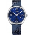 This Momento Fendi Bugs Watch F202013031 features 42.0 mm stainless steel case; blue sunray dial with silver colored numerals and indexes; genuine dual-textured blue alligator and calfskin leather band with folding closure; transparent case back. The timepiece is equipped with Swiss automatic movement that has date function. Magnificent designer watch for men.