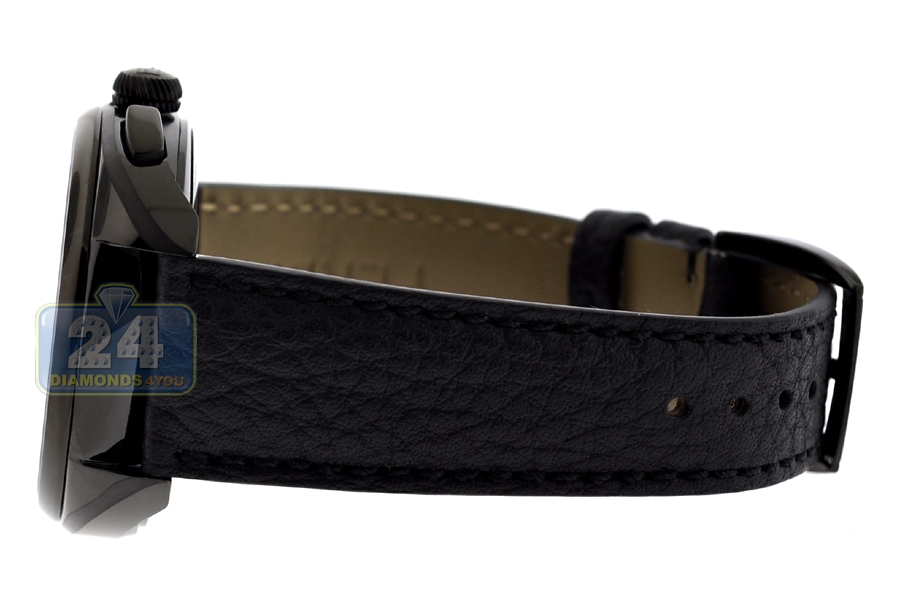 This Momento Fendi Bugs Watch F214611611D1 features 40.0 mm stainless steel case covered with black PVD; black dial that accented with white diamonds; genuine black calfskin leather band with tang buckle closure. The timepiece is equipped with Swiss quartz movement that has chronograph and date functions. Stunning designer watch for men.
