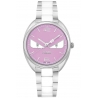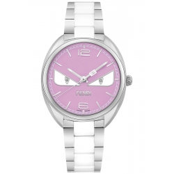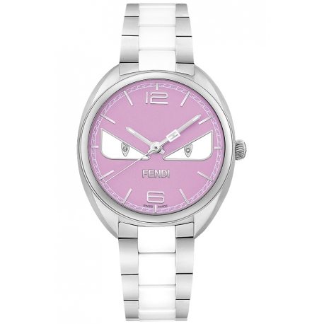 This Momento Fendi Diamond Bugs women's watch F216037204D1 has 34 mm case that is ably made of stainless steel with polished finish. It has pink lacquered dial with white luminescent eyes, set with 2 diamonds (0.005 carat), and secured by scratch resistant sapphire crystal. The timepiece is equipped with accurate Swiss made quartz movement. It also features stainless steel bracelet with white ceramic central links. An elegant designer watch for the lady! Also known as FOR370WHVF0QD1