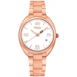 This Momento Fendi Watch F211534000 features 34.0 mm rose gold plated stainless steel case; white dial; rose gold plated stainless steel bracelet with folding closure. The timepiece is equipped with Swiss quartz movement that has date function. Gorgeous designer watch for women.