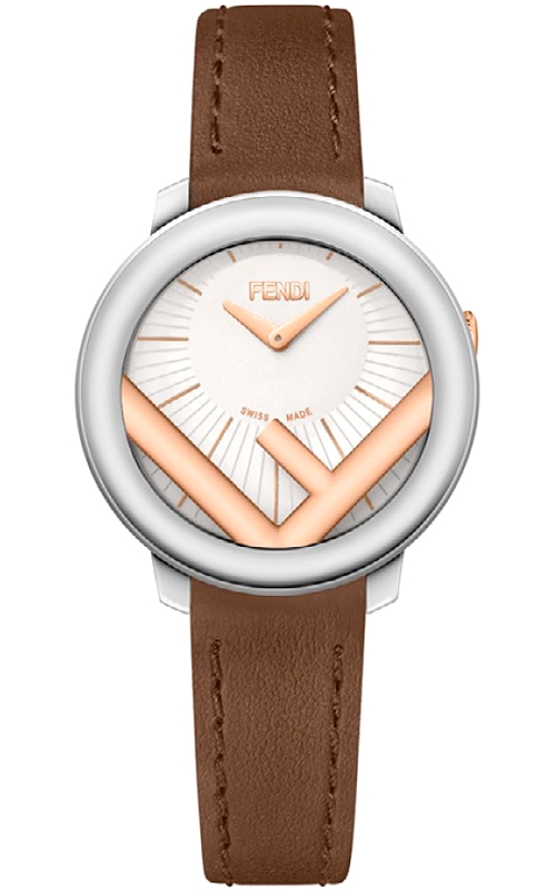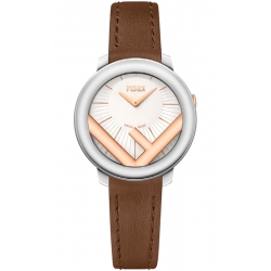 Fendi Run Away 28mm Silver Rose Two Tone Case Brown Leather Strap Women's Watch F710224021