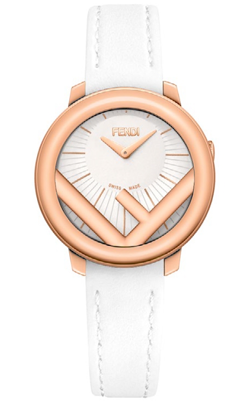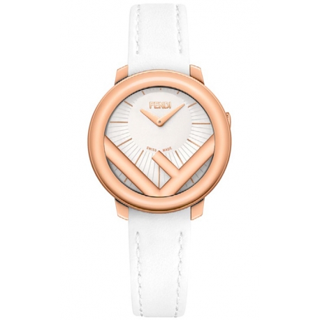 Fendi Run Away 28mm Rose Gold Case White Leather Strap Women's Watch F710524041