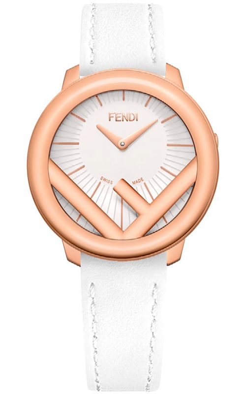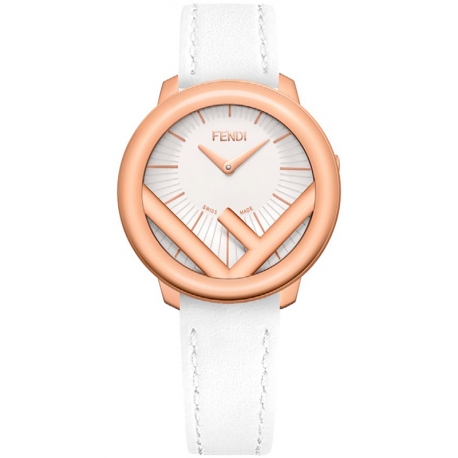 Fendi Run Away 36mm Rose Gold Case White Leather Strap Women's Watch F710534041