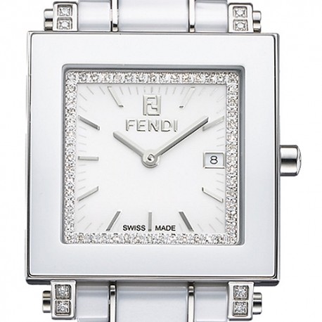 Fendi White Ceramic Square Diamond 32 mm Watch F622140DDC