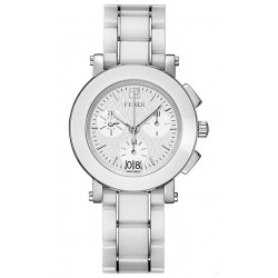 Fendi White Ceramic Round Shape Rose Gold Case Chronograph Bracelet Women's 38 mm Watch - Reference F672140