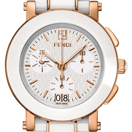 Fendi White Ceramic Round Rose Gold Chronograph Watch F672140