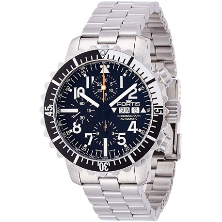 Men's Fortis B-42 Marinemaster Series Stainless Steel Bracelet Black Dial Watch Model #638.10.41M.
