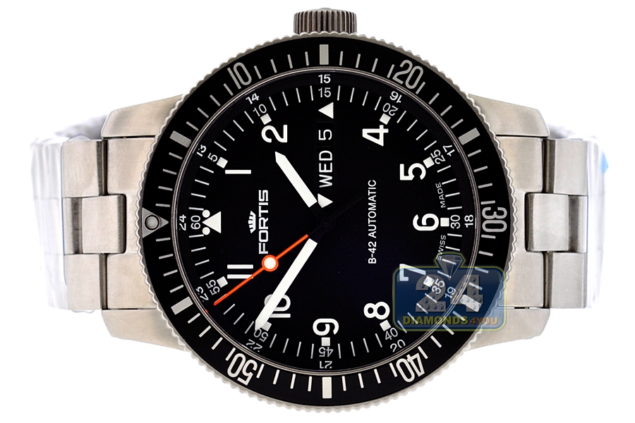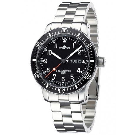 Men's Fortis B-42 Official Cosmonauts Stainless Steel Bracelet Black Dial Swiss Made Automatic Movement Watch Reference #647.10.11M.
