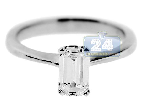 14K White Gold 1 ct GIA Emerald Cut Diamond Engagement Ring