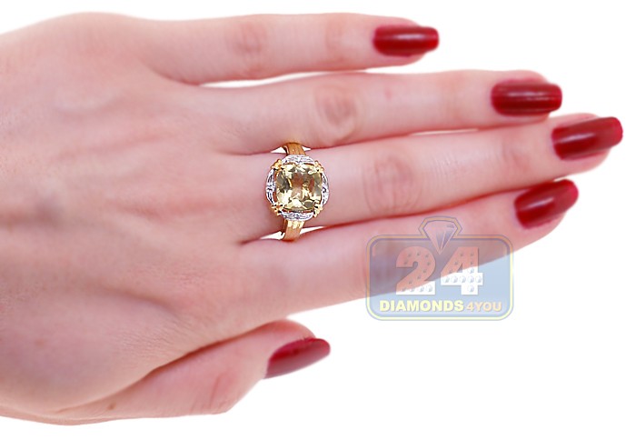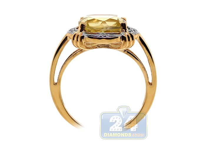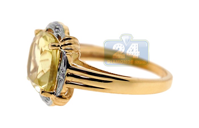 Four shimmering white topaz gemstones accent a faceted lemon quartz gemstone set in the center of this elegant ring. This stunning 14kt yellow gold plated 925 sterling silver ring is a luxurious addition to any jewelry collection.