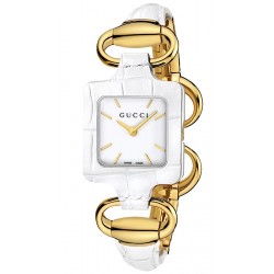 Gucci 1921 18K Gold Black Crocodile Womens Watch YA130405