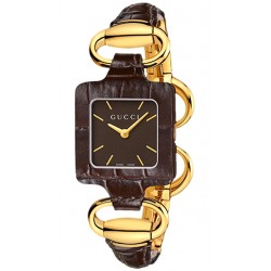 Women's Gucci 1921 Series 18K Yellow Gold Case & Bangle Bracelet Black Dial & Crocodile Inserts Swiss Quartz Movement Watch Reference #YA130405