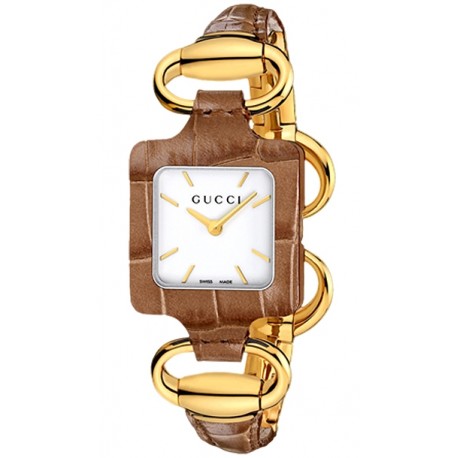 Lady's Gucci 1921 Series 18K Yellow Gold Case & Bangle Bracelet Brown Crocodile White Dial Swiss Quartz Movement Watch Model #YA130407