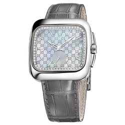 Men's Gucci Coupe Series Square Stainless Steel Case Gray Crocodile Band Diamond Mother of Pearl Dial Swiss Quartz Watch Style #YA131316