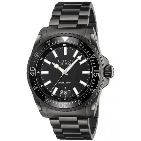 Men's Gucci Dive All Black PVD Stainless Steel Case & Bracelet Quartz Movement Watch Model #YA136205