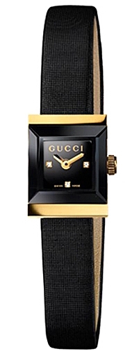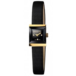 Lady's Gucci G-Frame Collection Square Shaped 18K Yellow Gold Case on Satin Strap Black Diamond Dial Watch Reference #YA128505