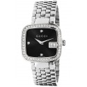 Lady's Gucci G-Gucci Series Black Dial Diamond Bezel 32 mm Stainless Steel Case on Matching Bracelet Watch Model #YA125412