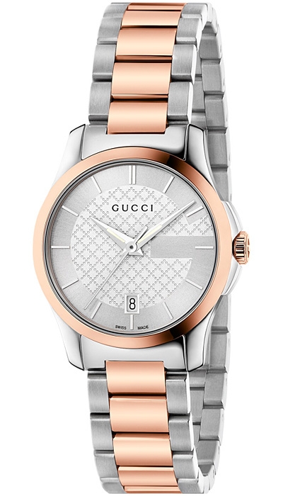 Women's Gucci G-Timeless Collection 27 mm Two Tone Stainless Steel & Rose Gold Plated Round Case Silver Dial Watch Reference #YA126528