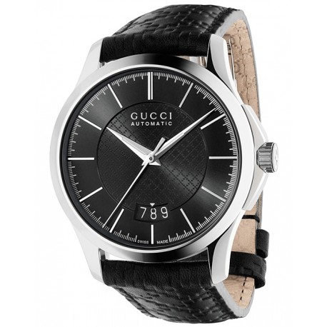 Men's Gucci G-Timeless Series Swiss Automatic Movement 38 mm Round Shaped Stainless Steel Case on Black Leather Band Watch Reference #YA126430