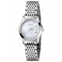 Lady's Gucci G-Timeless Series Diamond Bezel Stainless Steel Case & Bracelet White Mother of Pearl Dial Swiss Quartz Movement Watch Reference #YA126510