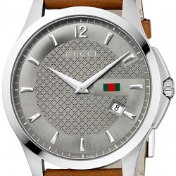 Gucci G-Timeless Slim Brown Leather Steel Unisex Watch YA126302