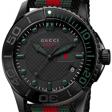 Gucci G-Timeless Sport Web Nylon Mens Black PVD Watch YA126229