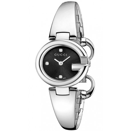 Women's Gucci Guccissima Collection Black Diamond Dial Small Sized Stainless Steel Case on Bangle Bracelet Watch Style #YA134505
