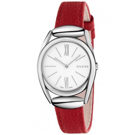 Women's Gucci Horsebit Series 30 mm Stainless Steel Case Red Leather Strap White Colored Dial Swiss Quartz Movement Watch Reference #YA140501