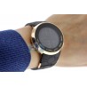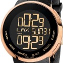 Gucci YA114222 is men's digital watch from I-Gucci collection. It features round shaped case made of rose gold plated stainless steel, GG pattern black rubber with push button deployment clasp, black dial, scratch resistant sapphire crystal. It is also equipped with Swiss digital movement that has dual time function. The caseback showcases Latin Grammy logo. This watch is brand-new, and comes in original packaging.