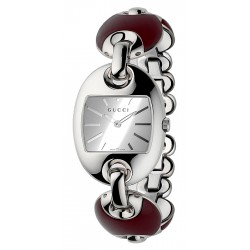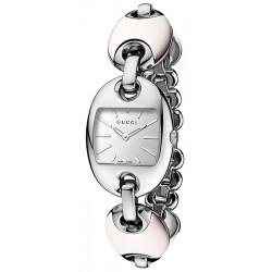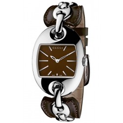 Lady's Gucci Marina Chain Collection Brown Ceramic Stainless Case on Matching Bracelet Silver Dial Swiss Quartz Movement Watch Reference #YA121516