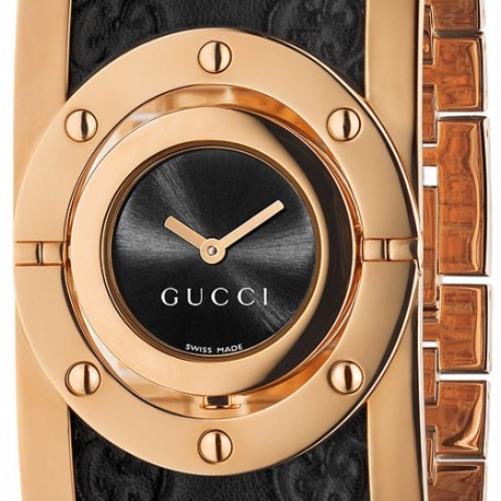 Gucci Twirl Large Rose Gold Leather Womens Watch YA112438