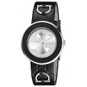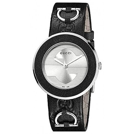 Gucci U-Play Medium Black Leather Steel Womens Watch YA129409
