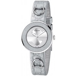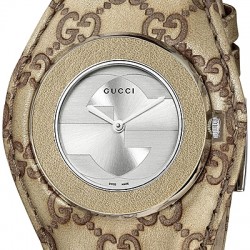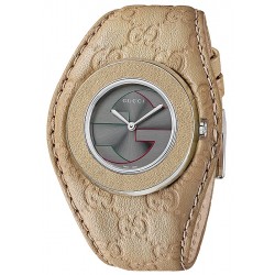 Gucci U-Play Medium Gold Steel Leather Womens Watch YA129408