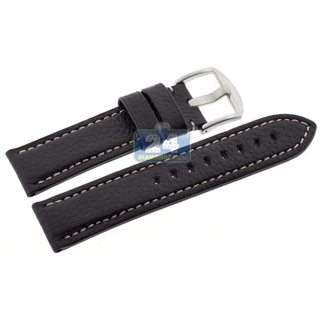 This fine black watch band is professionally handmade of genuine calfskin leather in USA by Hadley-Roma. It is available in 20 mm, 22 mm, 24 mm.