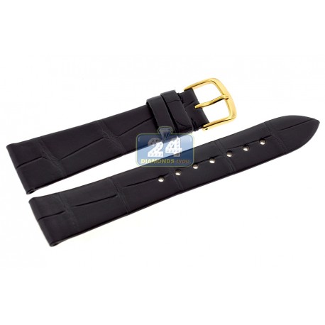 This fine matte black watch band is beautifully handcrafted in genuine alligator leather by Hadley-Roma. It is available in 16 mm, 17 mm, 18 mm, 19 mm, 20 mm.