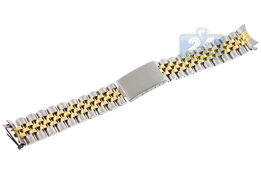 This elegant two-tone watch bracelet is expertly created from high-quality stainless steel by Hadley-Roma. It is available in 18 mm, 20 mm. It fits Rolex Jubilee watch.