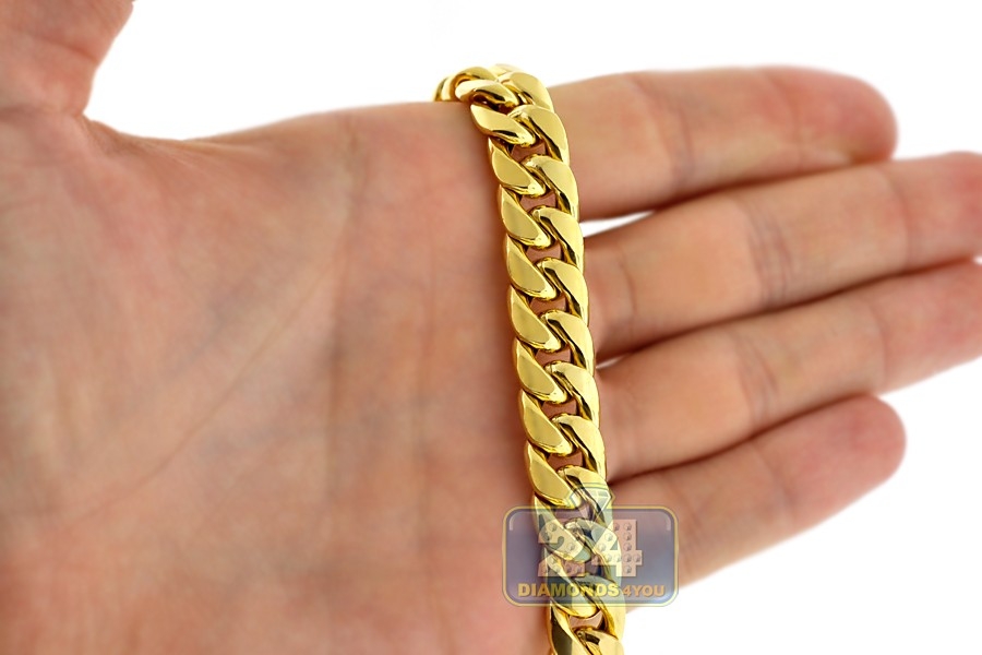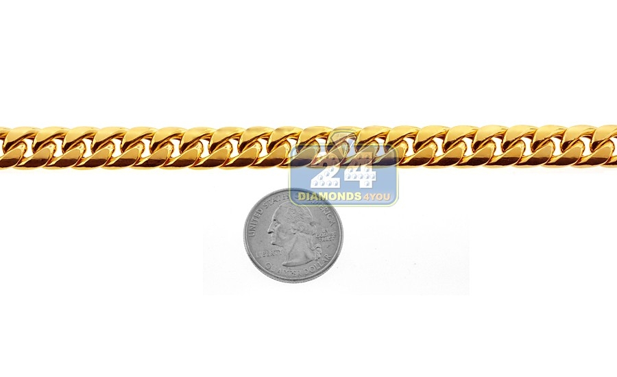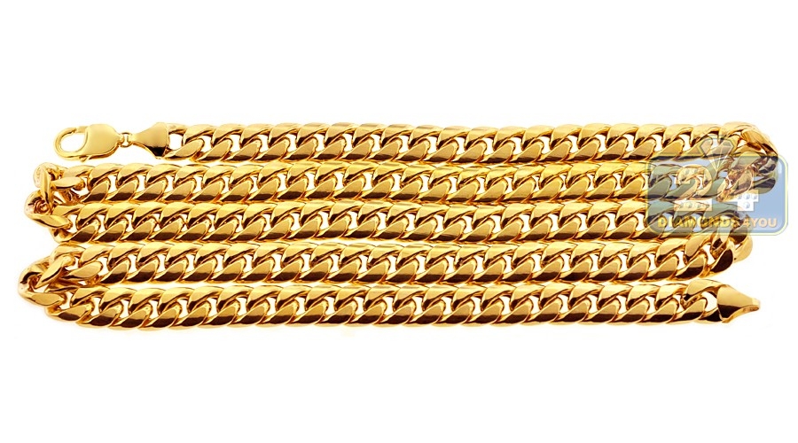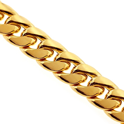 Present him a handsome and masculine hollow miami cuban link chain! Smartly handmade of Italian 10k yellow gold, it has high-polished finish for perfect shine. Men's gold chain measures 11 mm in width, and available in length of 28, 30, 32, 34, 36 or 38 inches. Depending on length, its weight varies from 86 to 116 grams. The piece is also secured by a safe and comfortable lobster claw closure. This gold cuban link necklace is perfect for every day of the week!